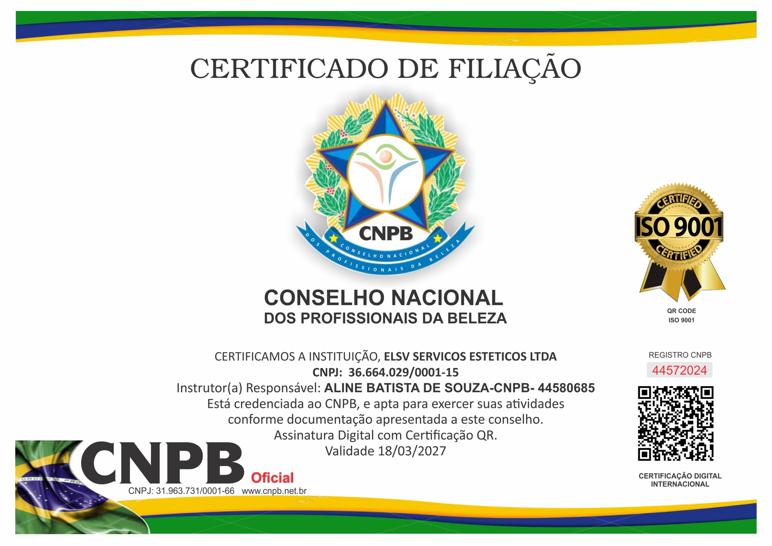CERTIFICAMOS ESTA INSTITUIÇÃO: ELSV SERVICOS ESTETICOS LTDA