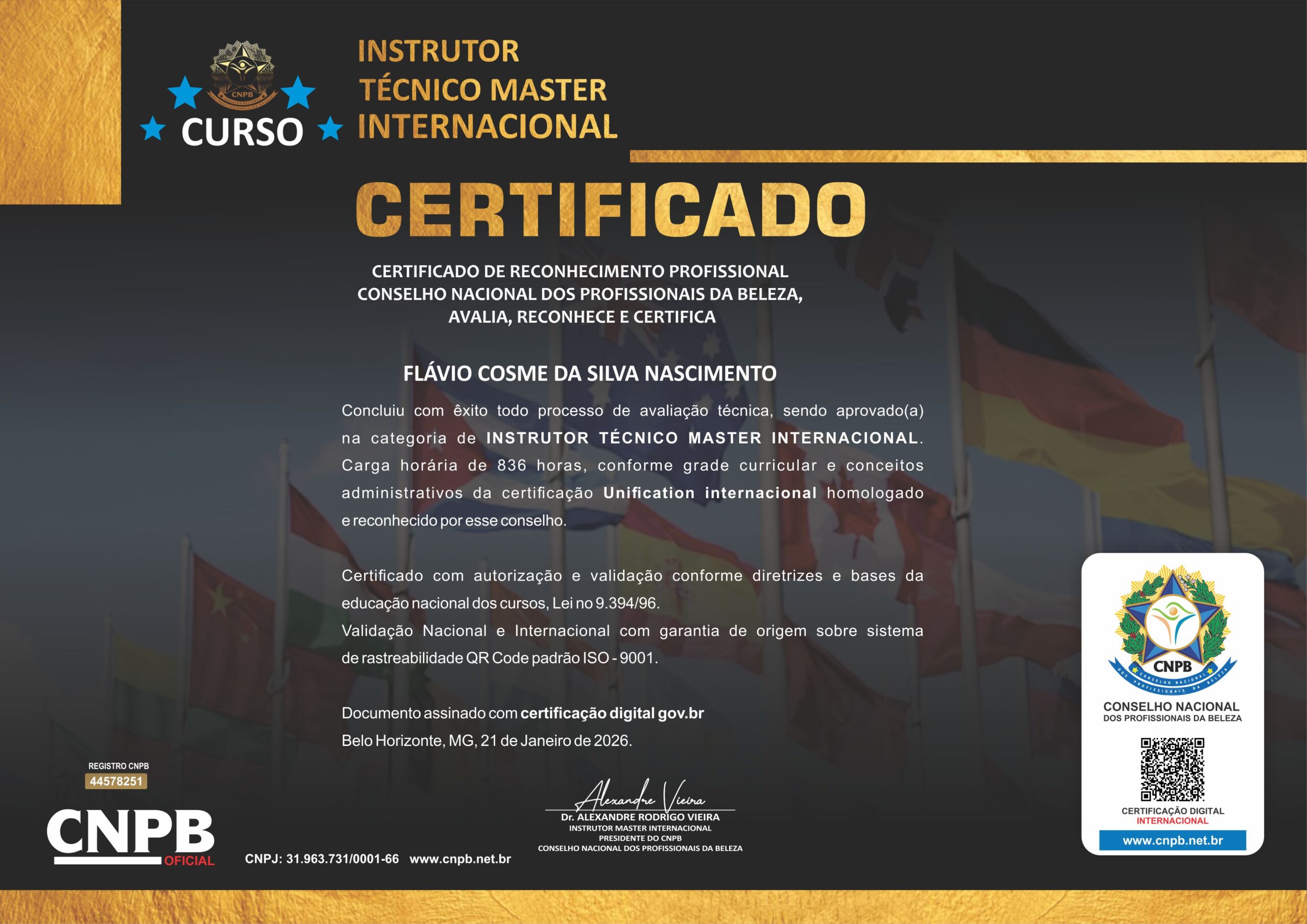 NA CATEGORIA DE INSTRUTOR TÉCNICO MASTER INTERNACIONAL.
