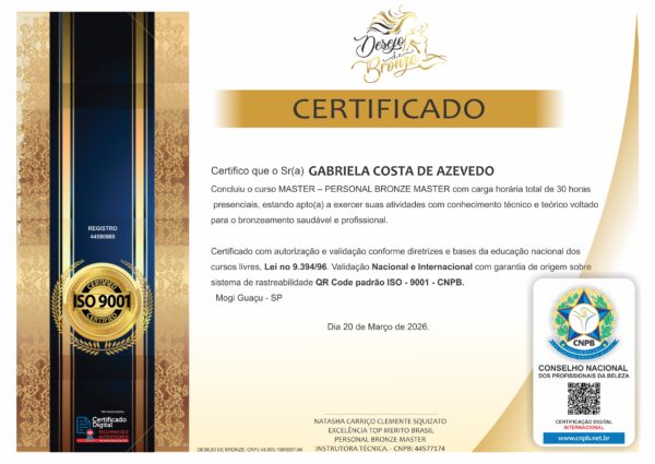 CONCLUIU O CURSO MASTER – PERSONAL BRONZE MASTER COM CARGA HORÁRIA TOTAL DE 30 HORAS