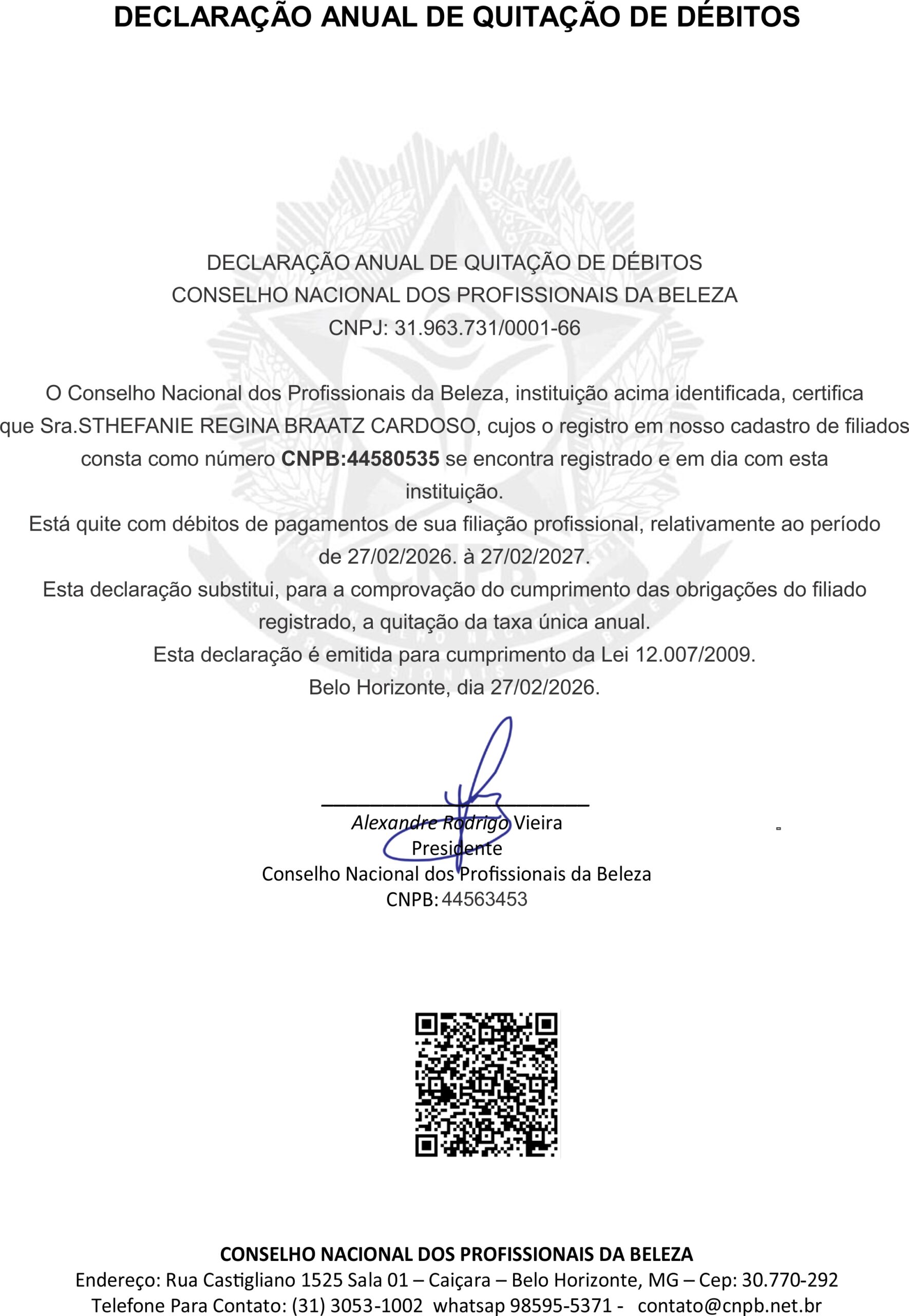 ESTÁ CREDENCIADA AO CNPB, E APTA PARA EXERCER SUAS ATIVIDADES CONFORME DOCUMENTAÇÃO APRESENTADA A ESTE CONSELHO.